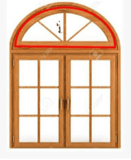 اذا كان الجزء العلوي من النافذه على شكل نصف دائره، فكم محيط المنطقة الملونة بالأحمر في الشكل أدناه ؟ استعمل ط = 3.14
